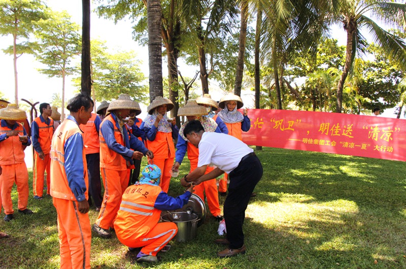 7月3日,集團(tuán)公司主席工會(huì)主席高斐斐率慰問(wèn)組一行,到鳳凰路一中路段、海虹廣場(chǎng)等地為正在高溫下作業(yè)的員工送去降溫解暑的綠豆湯,送上公司以及工會(huì)組織的關(guān)懷和問(wèn)候。