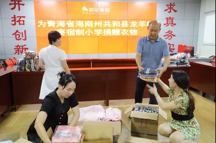 7月29日,明佳集團(tuán)黨支部在工作管理群號(hào)召管理層和辦公室人員為青海省海南州共和縣龍羊峽寄宿制小學(xué)孩子捐贈(zèng)衣物,一周時(shí)間內(nèi)先后收到職工捐贈(zèng)衣服120公斤。公司董事會(huì)也購(gòu)買了228件新衣服捐贈(zèng)給孩子們。