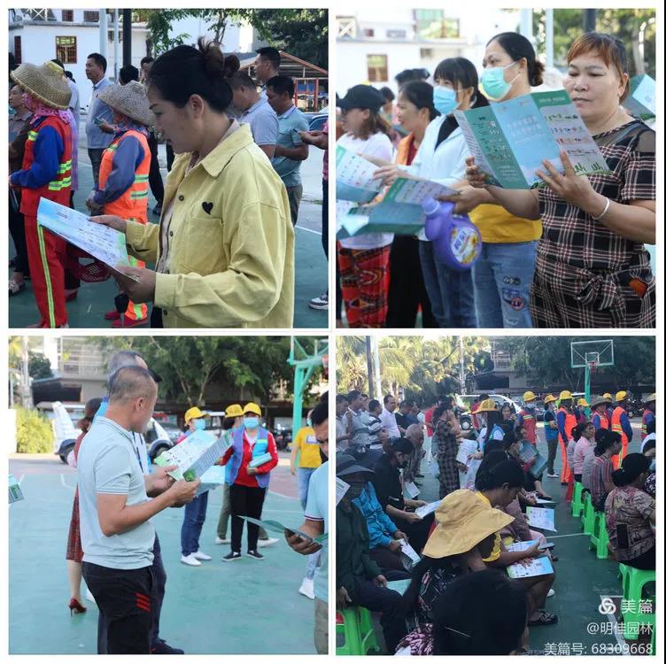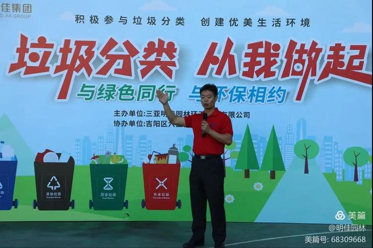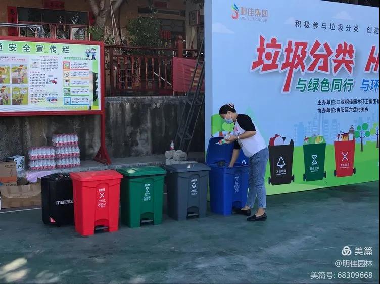 為了增加居民對(duì)垃圾分類的了解,養(yǎng)成垃圾分類的好習(xí)慣,助力三亞創(chuàng)建全國(guó)文明城市。2021年11月19日上午明佳集團(tuán)黨支部、工會(huì)、婦聯(lián)及共青團(tuán)在三亞市吉陽(yáng)區(qū)六盤村聯(lián)合組織開展了主題為“垃圾分類,從我做起”的垃圾分類宣傳活動(dòng),倡導(dǎo)“與綠色同行,與環(huán)保相約”的生活方式,讓垃圾分類進(jìn)一步融入居民的生活。明佳集團(tuán)副總裁、總助、黨建辦主任、婦聯(lián)主席、工會(huì)主席及共青團(tuán)書記出席了本次活動(dòng)。