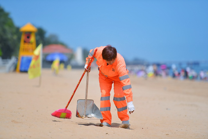 不管風吹日曬、酷暑嚴寒,他們總是起早貪黑、兢兢業(yè)業(yè),在海灘、在街道、在公廁、在田野、在橋底、在垃圾轉(zhuǎn)運站隨處可見他們的身影,城市的干凈整潔離不開他們勤勞的雙手,他們才是真正的城市美容師,這就是環(huán)衛(wèi)工人的工作寫照。